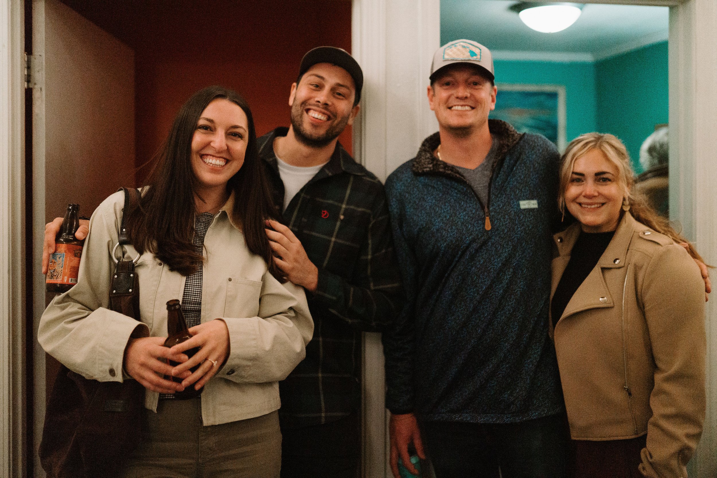 Lovely locals, Tory Pourian, [ ___________ ], Jordan Jones, and Jessica Jones, celebrating Good Day Studios at our kickoff fundraising party, where we introduced the public to our new space, served locally made refreshments, and raffled off locally made art and local gift certificates!