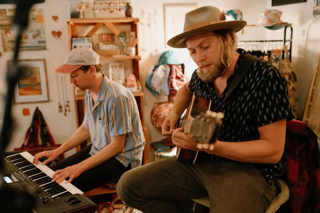 Local musician (and The Jonsteen Company CEO) Eliot Claasen and friend, Minnesota-based traveling musician Ben Stoeck, perform for the Good Evening Music Series at Good Day Shop’s original location