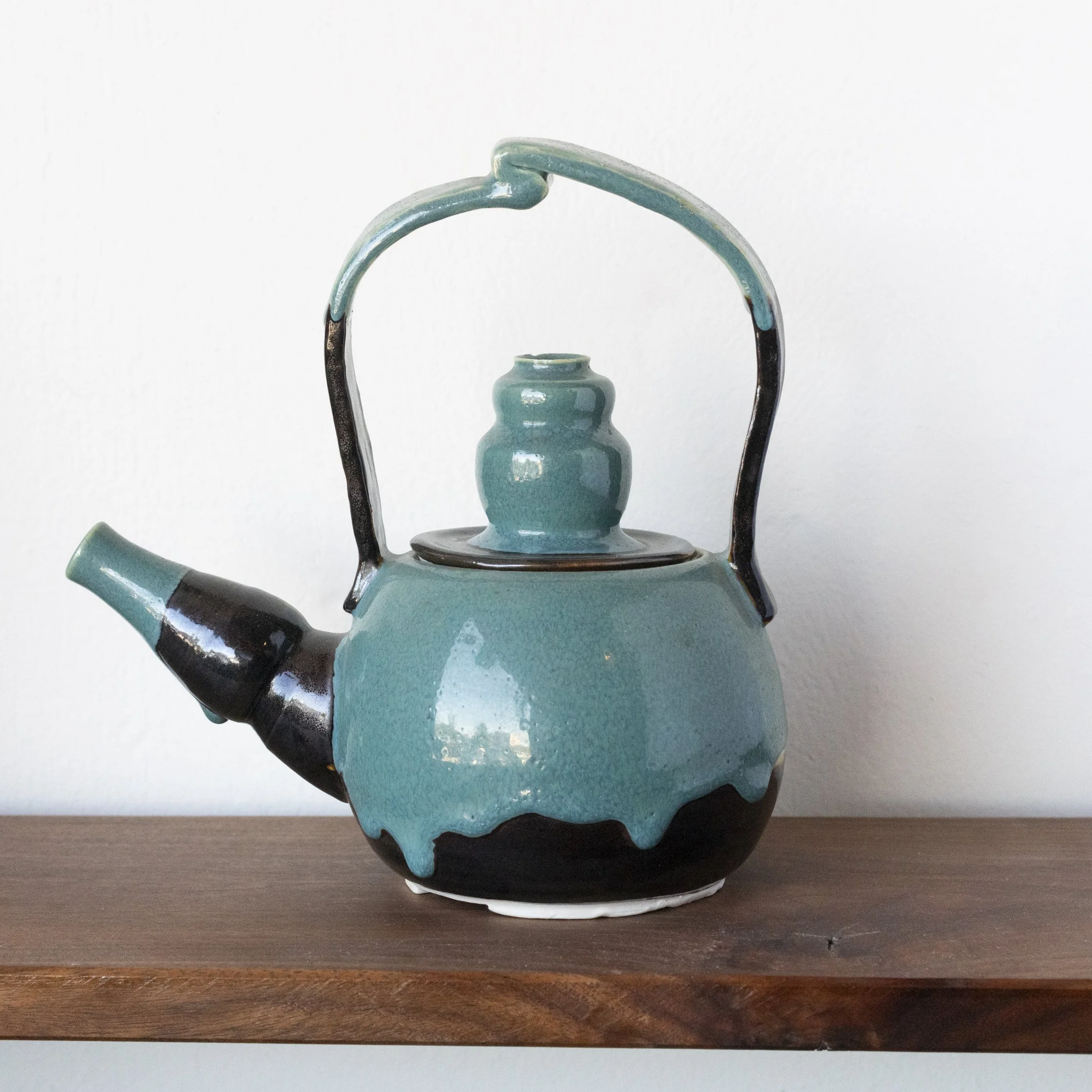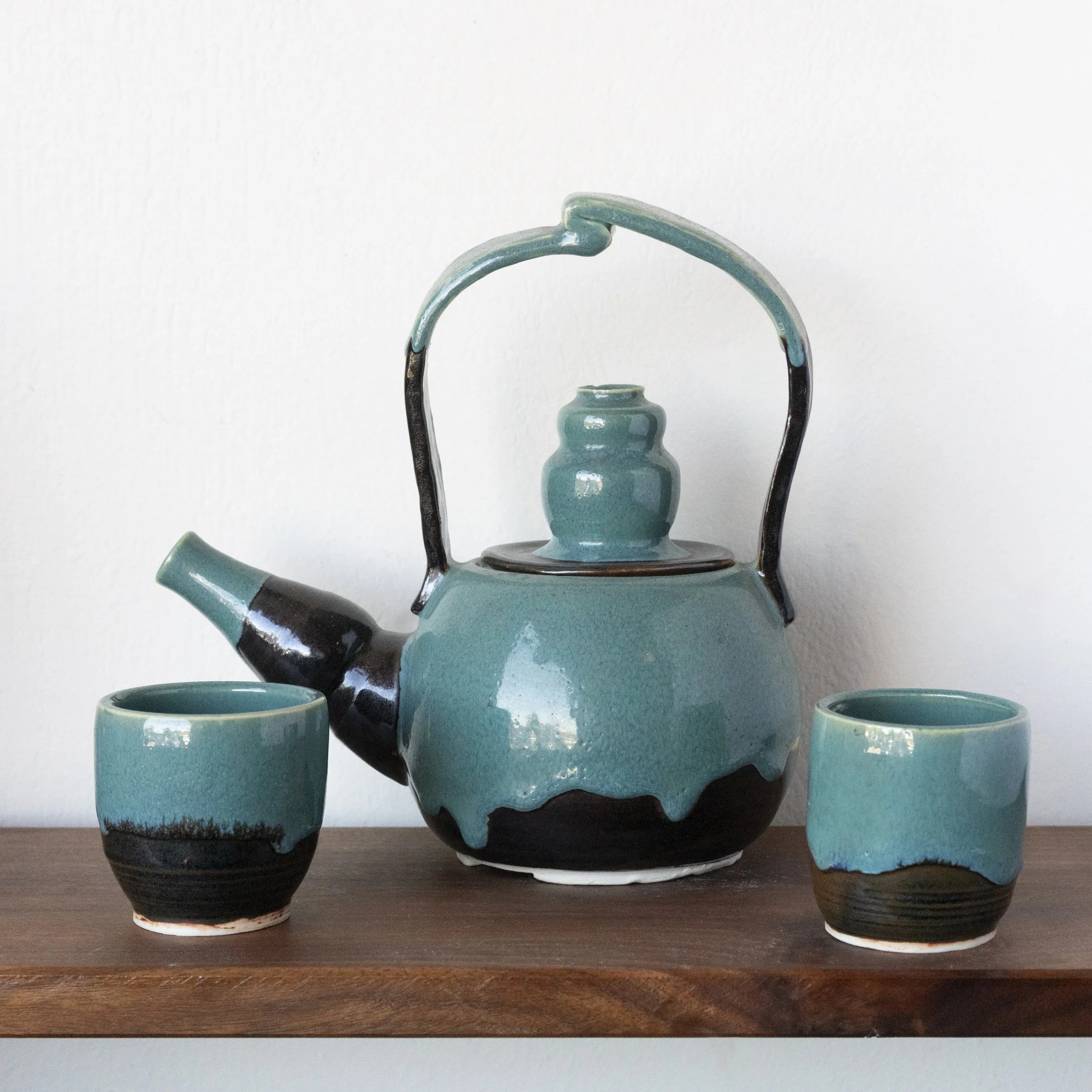 Enjoy this modern turquoise & black three-piece wheel-thrown tea set. This is a one-of-a-kind set, available only through Good Day Shop.
